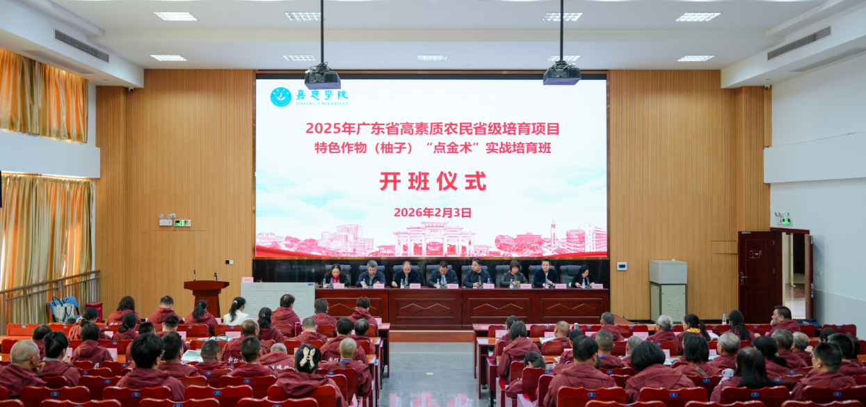 2月3日下午,2025年广东省高素质农民省级培育项目——特色作物(柚子)“点金术”实战培育开班仪式,在嘉应学院百年纪念大楼107教室举行。此次培育项目紧扣习近平总书记视察广东时关于“发展乡村特色产业、推进乡村全面振兴”的重要指示精神,聚焦梅州金柚这一特色优势产业,旨在通过“实战化”培训为柚农传技赋能,助力梅州苏区做优“土特产”文章,推动金柚产业提质增效、农民增收致富。